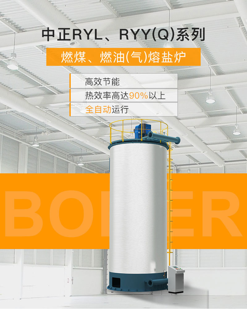 熔鹽爐是以熔化的硝酸鉀、亞硝酸鈉等的混合物為傳熱介質(zhì)的鍋爐。熔化爐將粉狀的熔鹽加熱到熔點(diǎn)以上,直到熔鹽的粘度可以用循環(huán)泵推動(dòng),使整個(gè)系統(tǒng)成為流動(dòng)可循環(huán)狀態(tài)后,送到熱載體爐進(jìn)一步循環(huán)升溫,使其在流動(dòng)狀態(tài)下循環(huán)使用。常用介質(zhì)工作溫度為400-550℃,最高工作溫度可達(dá)600℃。